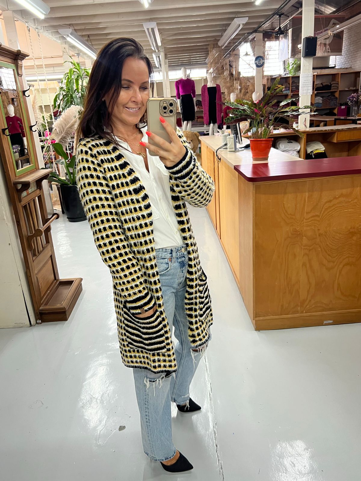 Cardigan alongado com abertura total e bolsos frontais. Toda a beleza dos pontos, aliada à praticidade e estilo, trazem charme à peça, além de proporcionar conforto.